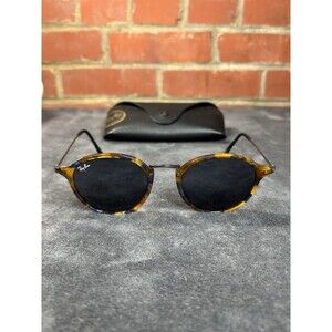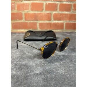 Ray Ban Round Fleck Tortoise/Gunmetal Blue Lens Sunglasses Arms Replaced