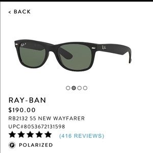 Brand new never out of the case The new Wayfarer® is an updated version of the original in size 55mm, with that Hollywood red carpet look. Using the same shape and style introduced in the '60s, Ray-Ban has added new color combinations sure to get you noticed. The black frame is paired with green, polarized lenses.