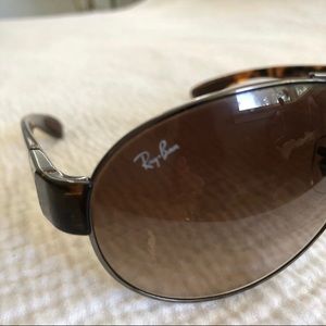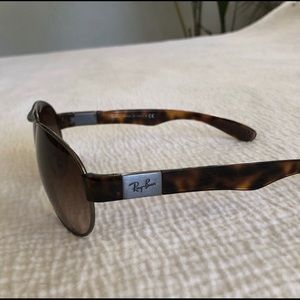 Women’s OS Ray Bans (without case). Great condition with the exception of a small scratch on the right lens (as shown in picture). Price reflects imperfection on lens. Frame in perfect condition.