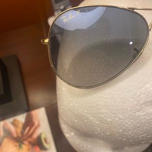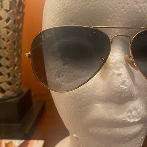 Practically new Ray Bans polarized! Gently worn, no scratches. Blue Lens with gold trim. These areas are classic style Aviators. With case!