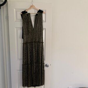Ray Dress Metallic Pleated Midi-dress In Gold
