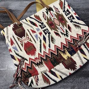 Ray L A Boho TapestryTote Bag Fringe Woven Tapestry Large Shoulder Purse