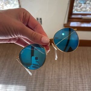 Blue round ray bans! There’s a crack in them but it’s not on the outside… you can’t tell there’s a crack either when you wear them!