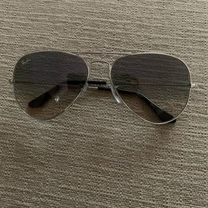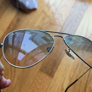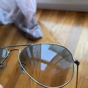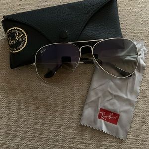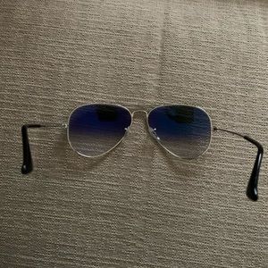 Authentic Ray-Ban Aviator Gradient Unisex Sunglasses. Great for a day on the beach! Small chips in the lens pictured above. When the glasses are on, you cannot see the chips. Worn only a hand full of times. Send me an offer!