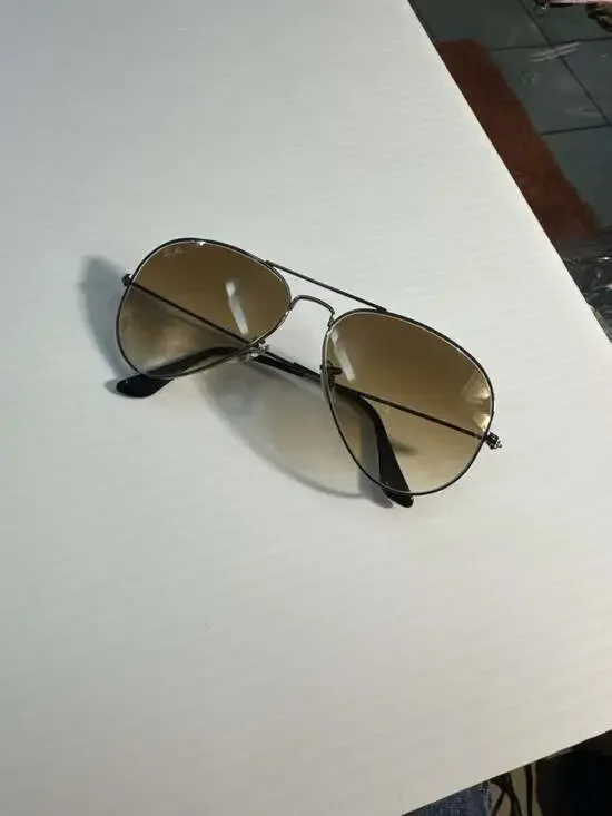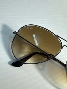 Classic Ray-Ban RB3025 Aviator Large Metal sunglasses in a gunmetal finish with brown gradient lenses. These iconic shades offer a timeless style with modern lens technology for clear vision and a sleek look.