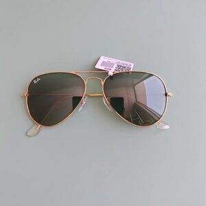 Iconic Ray-Ban aviator sunglasses with a sleek gold frame and classic green lenses. Perfect for driving, travel, beach days, or adding timeless style to any outfit.