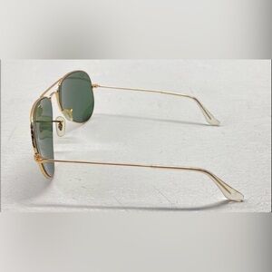 Ray-Ban aviator sunglasses with gold frames and green lenses. Comes with a case.