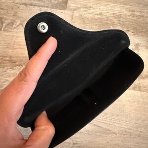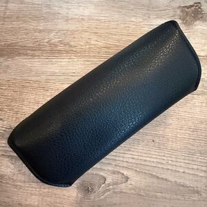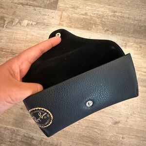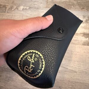 Elegant black leather case with Ray-Ban logo. Secure snap closure.