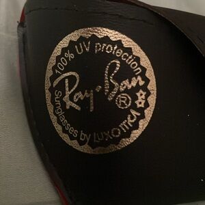 Elegant black case featuring a gold Ray-Ban logo. Perfect for protecting your sunglasses.