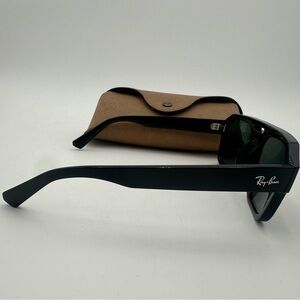 Black-framed unisex Ray-Ban sunglasses with original case, microfiber cloth, and papers. In good pre-owned condition.