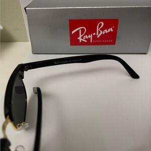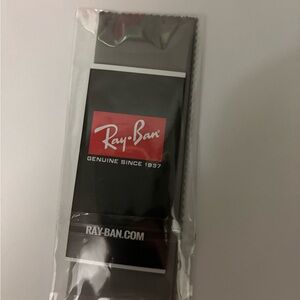 Elegant Ray-Ban packaging with a bold red logo. Sleek black design.