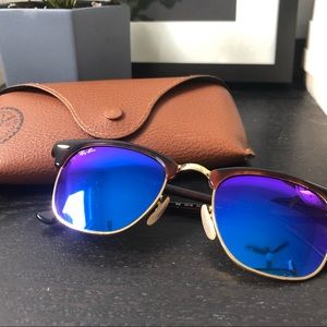 Ray Ban clubmaster in tortoise / blue lenses. Still full priced on RayBan’s website! Impeccable condition!!