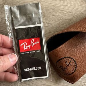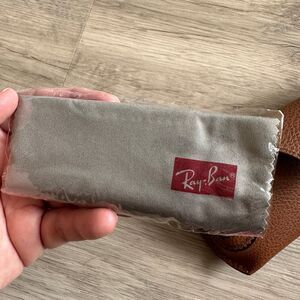 RayBan Eyeglasses Semi-Soft Snap Close Case with Lens Cloth Cognac Brown - in good preowned condition, a couple of small white marks on outside of case, can be removed with magic eraser. Otherwise feels new, unused.