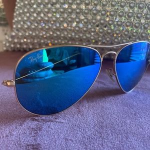 Ray-Ban Gold Frame Sunglasses with Blue Lenses