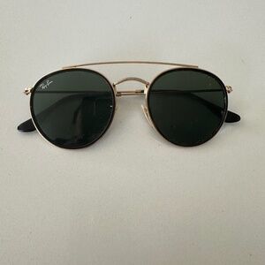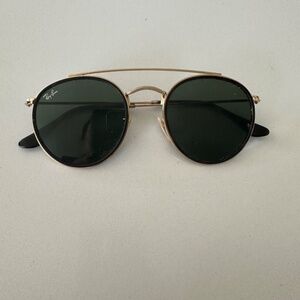 Stylish round sunglasses. Gold frame with black lenses. Perfect for any occasion.