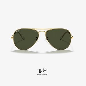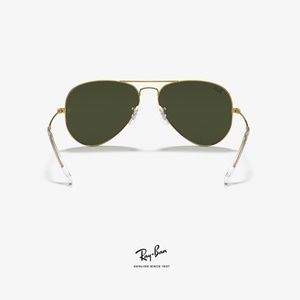 Stylish Ray-Ban aviator sunglasses. Gold frame with green lenses. Timeless design.