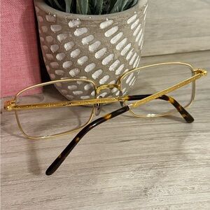 Stylish Ray-Ban glasses with gold frames. Tortoise temples add a classic touch.