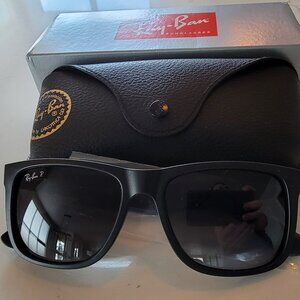 One up your game with the Ray-Ban Justin, one of the coolest looks in the Ray-Ban collection now with polarised lenses. Inspired by the iconic Wayfarer model, Justin offers a bold rubber finish to give a special touch to your style. Perfectly glare free polarized lenses. Look as good as you see on this unique upgrade to a Ray-Ban.