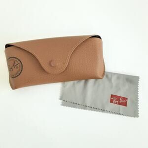 Ray-Ban Leather Hard Shell Glasses Case Brown Eyewear Cleaning Cloth Sunglasses