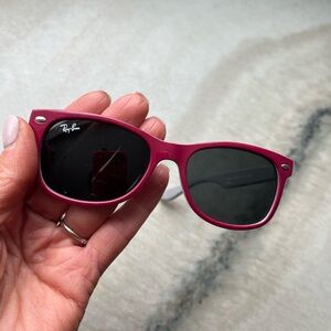 Stylish Ray-Ban sunglasses for kids. Maroon and grey frame. Classic black lenses. Size 47 mm. RJ 9052S