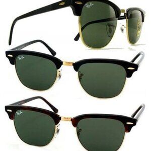 Ray-Ban RB3016-W365 Clubmaster Black Frame Green Lenses 51mm Unisex Italy Made