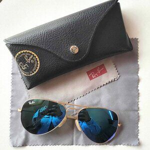 Classic and timeless! These Ray-Ban RB3025 Aviator Sunglasses feature a matte gold metal frame with stunning blue flash mirror polarized lenses that reduce glare while adding bold style.