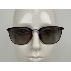 Part of the exclusive Scuderia Ferrari Collection, these Ray-Ban RB3673M sunglasses combine sporty elegance with high-performance style. The matte black metal frame is paired with striking red temples, while both Ray-Ban and Ferrari logos are featured on the lenses. The grey gradient lenses offer 100% UVA/UVB protection and include blue-violet light filtering and Transitions® technology for indoor and outdoor use. Overall, the sunglasses are in very good condition, with only minimal and barely noticeable surface scratches.