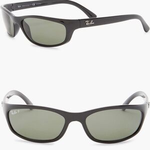 These Sunglasses have elongated temples and feature the classic metal Ray-Ban logo. A great fit for nearly all face shapes and a very easy to wear style of sunglasses.