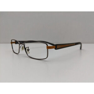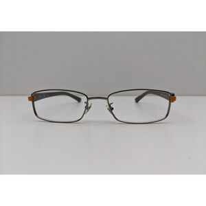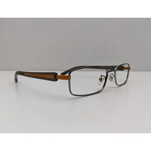 Excellent condition, no defects. May have a few tiny scratches. Not noticeable during wear. Please check pictures. Frame without lenses. Lens width: 52 mm Bridge size: 17 mm Temple size: 140 mm Frame/Temples color: Gray/Orange/Silver, Matte. Please note that you are paying for a frame ONLY.