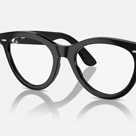 Ray-Ban RX2241V eyeglass frames in color code 2000, Polished Black. Classic round silhouette crafted from lightweight propionate with clear demo lenses, ready for prescription. Designed with generous face coverage and a High Bridge Fit.