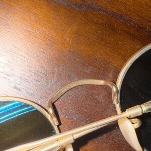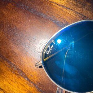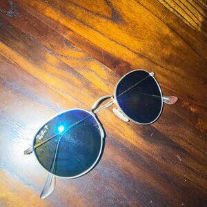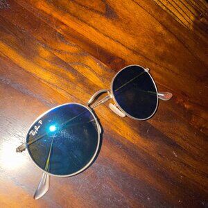 Ray-Ban Round Flash lenses Metal Sunglasses blue gold frames