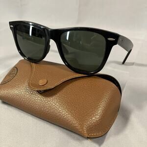 Ray-Ban Wayfarer Sunglasses Mens Size 54 Black Green Lenses Hand Made Italy