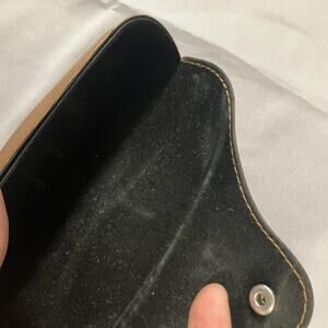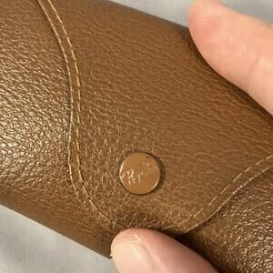 Genuine Ray-Ban stamp and logo details on brown faux leather case and snap closure