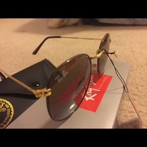Beautiful hip round Rayban's gold and light purple. Thin rim. Never used - brand new in box