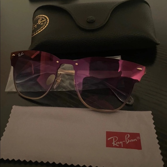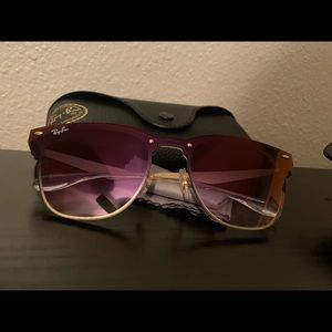 Ray-Ban Blaze Clubmaster gold frame with blue gradient mirror lenses. Worn once but aren’t my style I bought them at retail. Comes with glasses case.