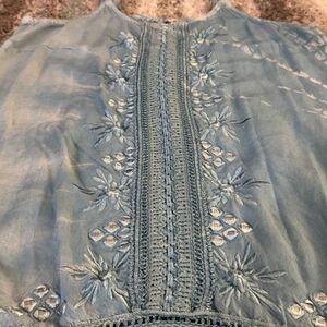 Raya Sun Blue Embroidered Sleeveless Tunic Tank Top or Mini Dress L
