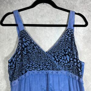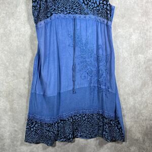 Raya Sun Dress Womens Small Blue Floral Sleeveless V-Neck Knee Length Casual Boho Festival Fairy