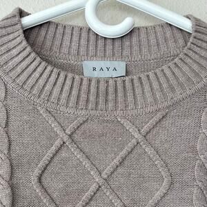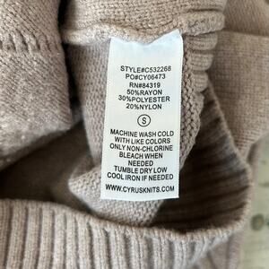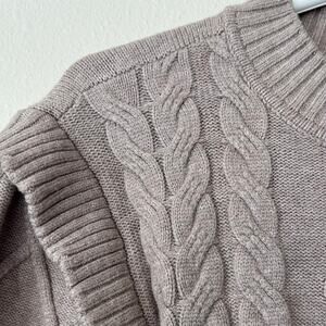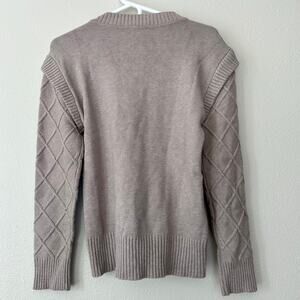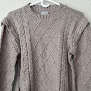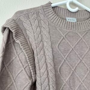 Raya cable chunky knit neutral sweater with ruffles sleeve detail stretch S