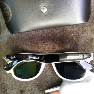 White/black ray-ban. has small scrap in corner. In great condition