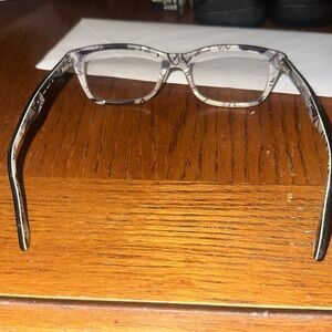 Here you see a pair of Ray-Ban frames in black and white black and gray on the inside these are women’s frames or a teenage girl could wear them. They are in great shape. They come with case if you have any questions feel free to message me. Thank you.