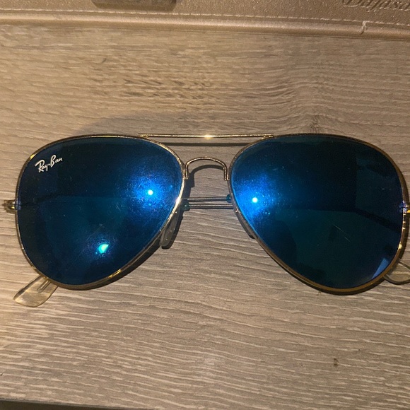 Blue ray ban aviators with gold rims