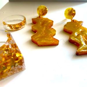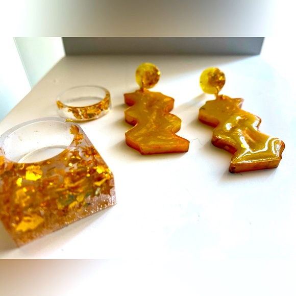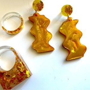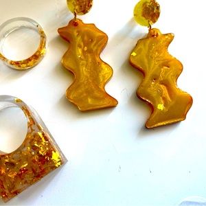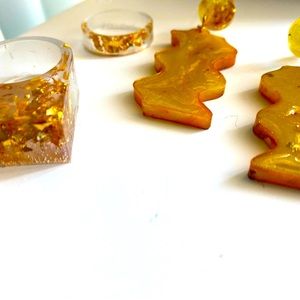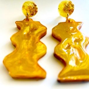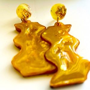 Handmade resin earrings - yellow pigment with gold flakes lava effect for a unique pair of detailed accessories for the newly found woman in you. Very lightweight.