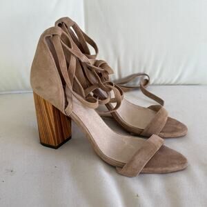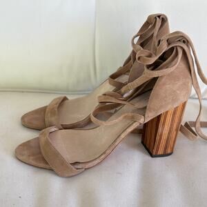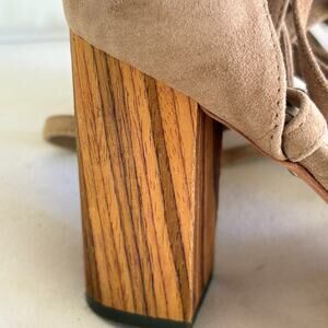 Raye Belle Wrap Heels. Tan suede. Wooden heels. Excellent condition. Size 9.