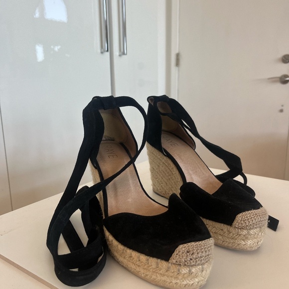 Cute summer fall transitional shoe! This fun for summer + fall heeled espadrille was too big for me unfortunately, so they have only been very lightly worn, 1-2x. Looking for new home :)