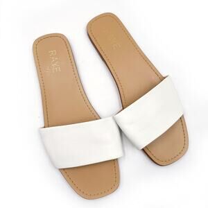 Raye Houston Sandals White Wide Strap Flat Slides Leather Square Sz 8.5