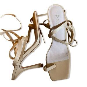 Raye Yox Heels in nude wrap around ankle ribbon strappy sandals shoes Revolve
