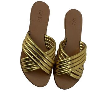 Raye Ziggy Gold Sandals Womens Size 7 Slip On Flats Metallic Open Toe goddess