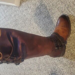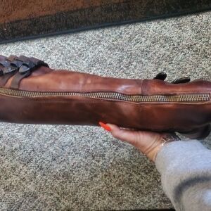 Freebird Raylene Stylish brown leather knee-high boots featuring multiple buckle straps. Perfect for a chic look. Used condition, zipper sticks a little. Please see all pics and ask questions. Reasonable offers accepted. Thanks!