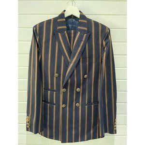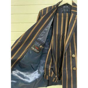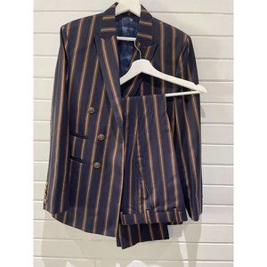 Raymond Shop Ibrahim & Sons Men's navy gold strip Suit(36) pants(33") custom S/M