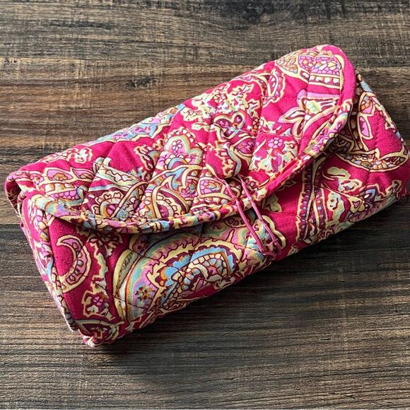 Raymond Waites Jewelry Roll Case Travel Organizer in Pinkish/Red/Turquoise, Yellow, Deep Purple Paisley Print
